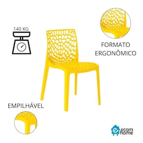 Organize e acomode seus clientes ou convidados com o kit 2 Cadeiras EcomHome Gruvyer, ideal para hotel, restaurante, pub, bar e áreas internas ou externas. Com design moderno e encosto vazado, oferece conforto ergonômico e ajuda a ampliar a sensação de espaço. A estrutura em plástico (polipropileno) resistente a raios UV e umidade garante durabilidade mesmo em uso intenso. O modelo sem braços e empilhável facilita a organização em ambientes reduzidos e o armazenamento após o uso. Versátil, combina com diferentes estilos de decoração em áreas gourmet, salas de jantar e espaços comerciais, com a confiança de uma cadeira leve, robusta e pronta para uso, sem necessidade de montagem.