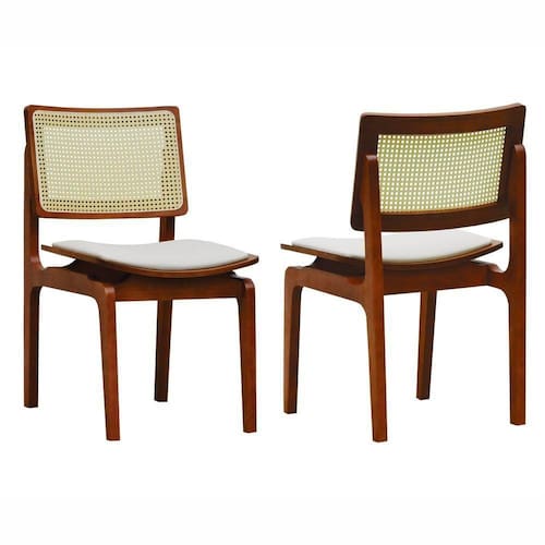 - Materiais: Estrutura em madeira de eucalipto, encosto com telinha sextavada aplicada e assento anatômico envernizado