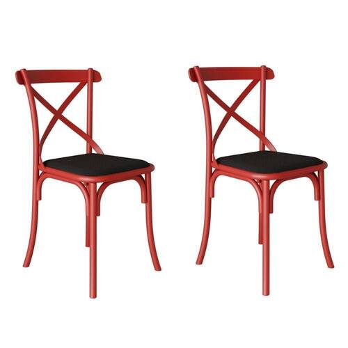 AS IMAGENS SÃO MERAMENTE ILUSTRATIVAS E PODEM SOFRER VARIAÇÕES DE COR E PEQUENOS DETALHES DE ACORDO COM O SEU MONITOR, ILUMINAÇÃO DO AMBIENTE E ATÉ MESMO A SUA PERCEPÇÃO VISUAL.Kit 2 Cadeiras Katrina Assento Corano Preto AÃo Vermelho
