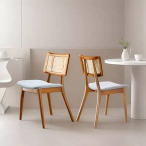 As Cadeiras Zara possuem um design moderno e um acabamento muito delicado, que vai trazer ao seu ambiente um ar sofisticado e elegante! As cadeiras tem a estrutura em madeira maciça tauari, madeira ecologicamente correta, e o seu encosto é fabricado em fibra de rattan natural (telinha). Quanto a durabilidade, esse modelo não deixa nada a desejar, o seu assento é fabricado com espuma de densidade D-26, muito confortável, e as cadeiras suportam ate 150Kg distribuídos. Se você procura uma cadeira elegante e moderna, esse modelo é perfeito!! Aproveite!