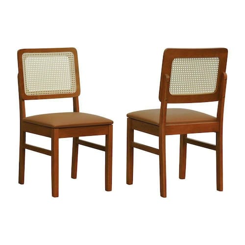 Kit 2 Cadeiras Madeira Maciça Lyon Encosto Telinha Natural - Amêndoa Assento Estofado Corano Caramelo - Marrom