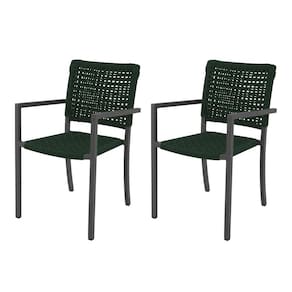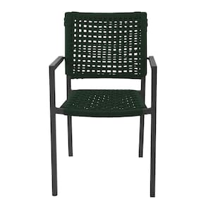 Kit 2 Cadeiras Marília Corda Náutica Base em Alumínio Preto/verde Musgo