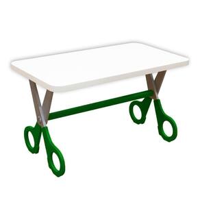 Kit 2 Cadeiras Mesa Infantil Tesoura Verde Tampo Branco Retangular Base Temática Para Estudos E Desenhos Mobília Decor Conjunto Mesinha Pé Tesoura + 2 Cadeiras Pé Lápis Borracha Conjunto infantil robusto com mesa de base em ?tesoura? e duas cadeiras com pés em formato de lápis (amarelo), ideal para atividades, desenhos e leitura em quartos, brinquedotecas e escolinhas, unindo estabilidade, conforto e cores vibrantes.? Mesa: 53 cm de altura; 90 x 50 cm; 18 kg; suporta até 10 kg; tampo em MDF/madeira com pintura tinta e interno Branco TX; pés em MDF no formato tesoura, fixação por parafusos; acompanha acessórios e necessita montagem.?