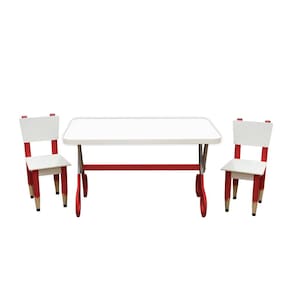 Conjunto Mesinha Pé Tesoura + 2 Cadeiras Pé Lápis Borracha Conjunto infantil robusto com mesa de base em ?tesoura? e duas cadeiras com pés em formato de lápis (amarelo), ideal para atividades, desenhos e leitura em quartos, brinquedotecas e escolinhas, unindo estabilidade, conforto e cores vibrantes.?