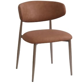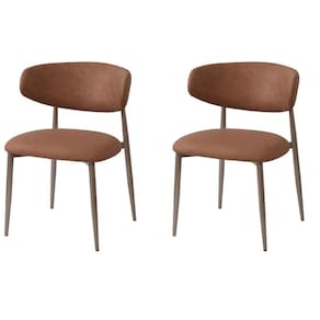 Kit 2 Cadeiras Napoli Agatha Fratini Assento Encosto Revestidos PU Caramelo Base Aço Champagne