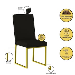 Cor dos Pés: Dourado | Tipo de Tecido: Suede | Estrutura: Madeira | Marca: BALAQUI DECOR | Quantidade de Caixas Por Embalagem: 2 | Tipo de Produto: Cadeira | Altura: 75 | Largura: 44 | Profundidade: 57 | Fabricante: BALAQUI DECOR | Regulamentações aplicáveis a produtos perigosos (supplierDeclaredDGHZRegulation): Não aplicável | Volume: 1 | Precisa de baterias ou pilhas (areBatteriesRequired): Não | Peso do Item (itemWeight): 14 Cor: Preto