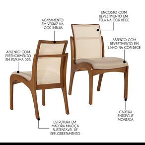 CARACTERÍSTICAS TÉCNICAS: - Produzido em Madeira Maciça Sustentável - Acabamento em Verniz na cor Imbuia - Encosto com Revestimento em Tela Sintética na cor Bege - Assento Estofado Preenchido com Espuma D23 - Revestimento do Assento em Linho na cor Bege M58 - Cadeira Entregue Montada *Kit Composto por DUAS Cadeiras