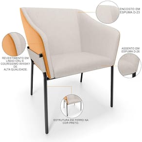 Que tal inovar na sala de jantar e apostar em um modelo de cadeira de jantar estilo poltrona?! Isso mesmo, com o Kit 02 Cadeiras Para Sala de Jantar Estar Living Olívia L02 Linho Cru Couríssimo Whisky, da Lyam Decor, você pode.