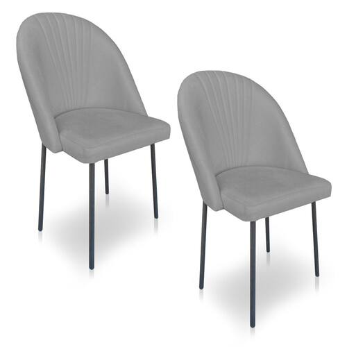 Kit 2 Cadeiras Poltrona de Jantar Ariel Suede Pés de Ferro Preto - Pallazio - Grafite