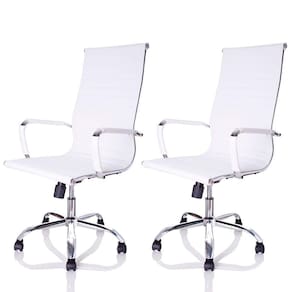 Kit com 2 Cadeiras Giratórias Charles Eames Esteirinha possui um misto de design e conforto, compondo um escritório super charmoso e confortável. O assento e o encosto em couro P.U. e os braços fixos (não possuem regulagem de altura) também são revestidos em PU garantindo maior durabilidade.