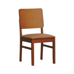Kit 2 Cadeiras Quéops Madeira Maciça Encosto Anatômico Assento Estofado - Amêndoa Corano Caramelo - Marrom