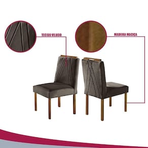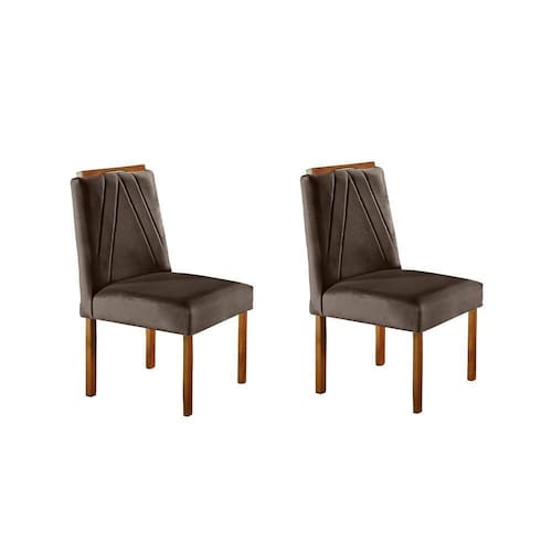 Kit 2 Cadeiras Safira Madeira Maciça Veludo Móveis Mundial Marrom