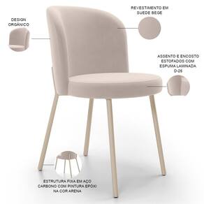 Altura da cadeira: 80 cm | Altura do assento a partir do solo: 46 cm | Color: Bege | ColorFamily: Bege | ColorSimple: Bege | ColorSupplier: Bege | Cor: Bege | Cor da estrutura da cadeira: Arena | Cor do assento: Bege | Cor do estofamento: Bege | Desenho do tecido: Liso | É cadeira de balanço: Não | É dobrável: Não | É empilhável: Não | Espessura do assento: na | Fabricante: Lyam Decor | Firmeza: Firmeza | Largura da cadeira: 44 cm | Largura do assento: 42 cm | Material: Estrutura em Aço carbono, Revestimento em Suede e espuma | Material do estofamento: Suede e espuma | MaterialFamily: Aço carbono, suede e espuma | Model: Gavi | OriginCountry: Nacional | OriginState: PR | Peso máximo suportado: 120 kg | ProductContents: 02 Cadeiras | ProductHeight: 81 cm | ProductInstructions: Produto para uso em ambiente interno, nao devendo ficar exposto ao sol, calor e umidade excessivos. | ProductLength: 54 cm | ProductWarranty: 90 dias após o recebimento do produto | ProductWeight: 10 kg | ProductWidth: 90 cm | Profundidade da cadeira: 53 cm | Profundidade do assento: 42 cm | Requer montagem: Não | SizeDescription: Altura: 81 cm x Largura: 90 cm x Profundidade: 54 cm | SupplierSimpleName: Kit 2 Cadeiras Sala de Jantar Estofada Gavi Arena L02 Suede Bege - Lyam Decor | Tempo de montagem: na