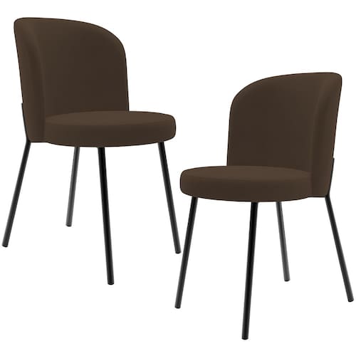 Kit 2 Cadeiras Sala de Jantar Estofada Gavi L02 Suede Marrom - Lyam Decor