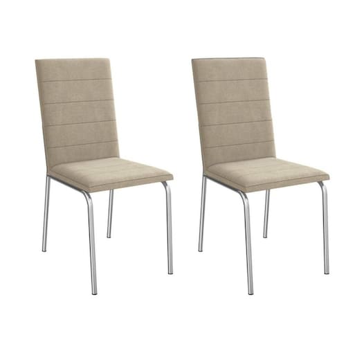 Cadeira Sala de Jantar Amsterdã 2C091 Aço Kit 2 Un Cromado/Linho Bege Fendi - Kappesberg