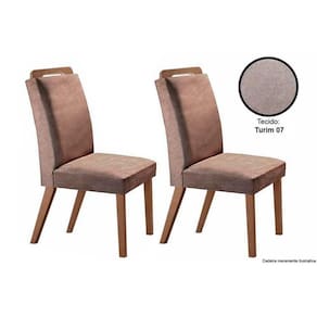Cadeira Sala de Jantar Athenas Kit 2 Un Madeira Capuccino/Linho Bege Turim - Rufato