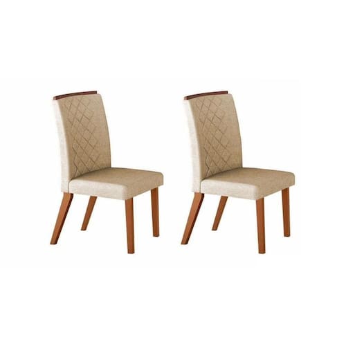 Cadeira Sala de Jantar Jade Kit 2 Un Madeira Capuccino/Linho Bege Turim - Rufato