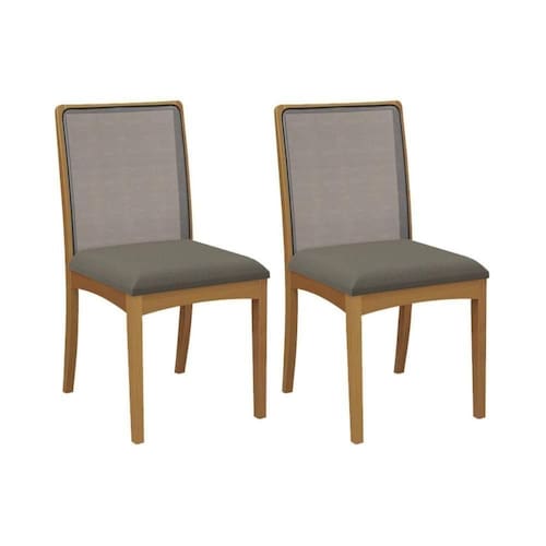 Kit 2 Cadeiras Sala Jantar Lara 2cmm007ca Premium Madeira Maciça 2 Un Carvalho/linho Escuro/tela Grafite - Kappesberg