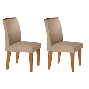 Kit 2 Cadeiras Sala Jantar Lunara 2 Un Madeira Capuccino/linho Bege Turim - Rufato