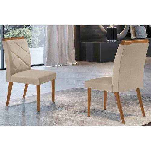 Kit 2 Cadeiras Sala Jantar Melissa 2 Un Madeira Capuccino/Linho Bege Turim - Rufato - Blush