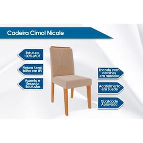 Cadeira Sala de Jantar Nicole Kit 2 Un Cinamomo/Suede Nude Bege - Cimol