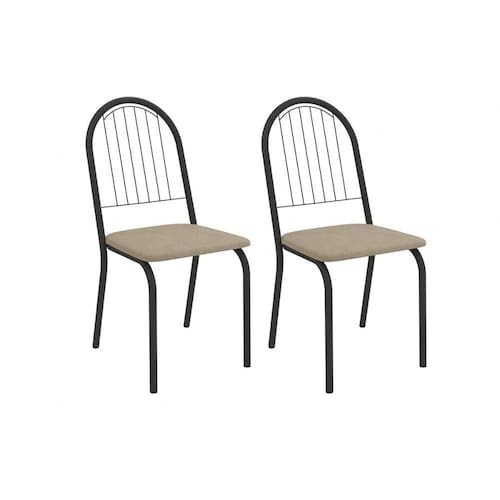 Cadeira Sala de Jantar Noruega 2C077PRF Aço Kit 2 Un Preto/Linho Bege Fendi - Kappesberg