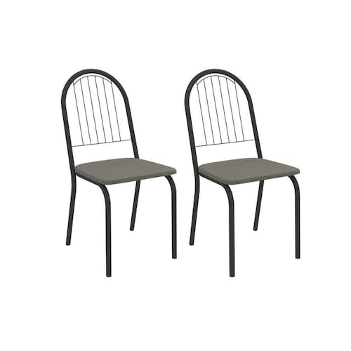 Kit 2 Cadeiras Sala Jantar Noruega 2C077PRF Aço 2 Un Preto/Linho Escuro - Kappesberg