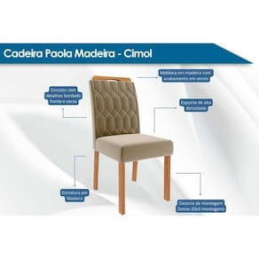 Cadeira Sala de Jantar Paola Wood Kit 2 Un Madeirado/Suede Nude Bege - Cimol