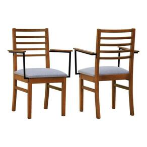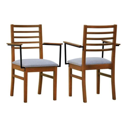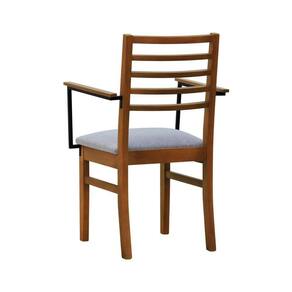 - Materiais: Estrutura em madeira de eucalipto maciço, assento estofado e encosto ripado, braços em aço de carbono com pintura epóxi e madeira tingida na cor amêndoa.