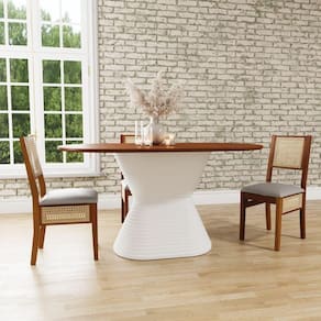 - Materiais: Estrutura em madeira de eucalipto maciço, assento estofado e encosto reto com telinha sextavada aplicada.