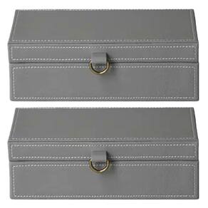 Medidas: 35 x 21 x 10cm Caixa em material sintético ,com detalhes pespontados em branco em todas as bordas. Por dentro toda forrada em veludo off white. Perfeita para organizar o closet com relógios, joias, perfumes. Ou também com acessórios diariamente que precisam ficar ali do nosso ladinho. Linda para organizar o cantinho do café ou chá, com sachês ou cápsulas. E também maravilhosa para organizar controles na sala ou home office. Ter tudo organizado é maravilhoso, ainda mais com um organizador que decora e deixa o ambiente ainda mais charmoso ficha técnica Unidades: 2 Medidas: 35 x 21 x 10cm Material: sintetico Marca: paramount Marca: Não Informado