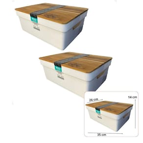 Caixa Organizadora Flat Com Tampa Teca Branca 10L 14x26x35 Linha Flat Madeira TECA Naturalmente sofisticada