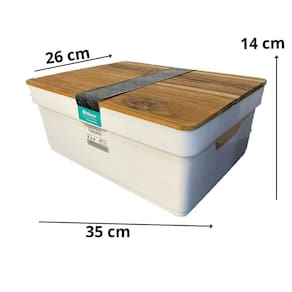 Caixa Organizadora Flat Com Tampa Teca Branca 10L 14x26x35 Linha Flat Madeira TECA Naturalmente sofisticada