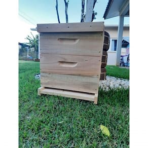 Acompanha o produto: - CADA CAIXA1 Assoalho 1 Ninho c/ 10 quadros - COM arame/ilhós 1 Melgueiras c/ 10 quadros cada - COM arame/ilhós 1 Tampo