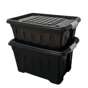 O kit contém: 1 caixa organizadora multiuso 53l empilhável trava e rodizio 1 caixa organizadora multiuso 31l empilhável trava e rodizio
