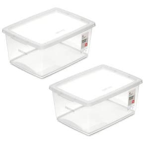 Garantia: 90 dias / Peso total: 644g / Cor predominante: transparente / Referência: 7798139724234; Dimensões de cada caixa: 33,5cm (C) x 24cm (L) x 15cm (A); Capacidade: 7,5 litros cada; Conteúdo: 2 caixas organizadoras com tampa; Material: polipropileno; Obs.: o produto possui corpo e tampa transparentes, imagens com outras cores são somente ilustrativas.