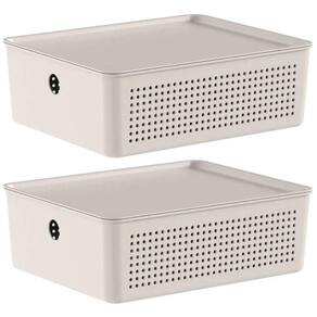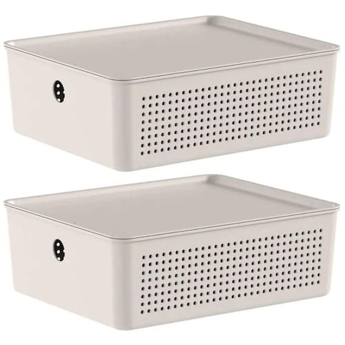 Kit 2 Caixas Organizadoras com Tampa Ou 27x22x9cm Cesto Organizador 5,4L Bege Flow.