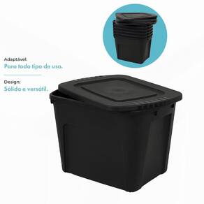Cada organizador possui uma tampa de fechamento hermético e um design super prático com reentrância lateral para uma pegada segura, podem ser com ou sem tampas, completamente empilháveis, encaixáveis, resistentes e duráveis, para casa, negócios, mudanças. Feito em plástico reforçado MEDIDAS: COMPRIMENTO: 61cm LARGURA: 43,5cm ALTURA: 42,5cm PESO: 2,1KgSUPORTA: 80Kg.