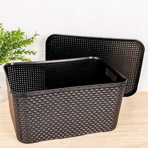 Kit 2 Caixas Organizadoras Rattan com Tampa Preto 20 LitrosO Kit de Caixas Organizadoras Rattan são a escolha perfeita para quem gosta de manter a casa, escritório e banheiros sempre organizados com muita beleza e qualidade. A caixa organizadora é a peça ideal para armazenar diversos utensílios, facilitando a organização de seus guarda roupas, armários, banheiros, brinquedos, escritórios e em diversos outros espaços onde sua necessidade e imaginação podem chegar.DESCRIÇÃO TÉCNICA:O Kit de Caixas Organizadoras da Arqplast são produzidas totalmente em plástico polipropileno, atóxico e livre de BPA. cada caixa tem capacidade para até 20 litros e tem 20cm de altura, 29,5 de largura e 42cm de comprimento, comportando os mais diversos tipos de utensilios para sua organização. Possui tampa empilhável e entradas nas laterais da caixa, facilitando o transporte, além de ter o modelo no estilo rattan, que contam com furinhos nas laterais e na tampa, garantindo a circulação de ar. Um item indispensável e funcional para os seus dias.FICHA TÉCNICA:Material: Plástico PolipropilenoCapacidade: 20 LitrosAltura: 20cmLargura: 29,5cmComprimento: 42cmContém: 2 Caixas Organizadoras 20 LitrosIMAGEM MERAMENTE ILUSTRATIVA