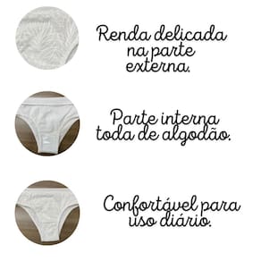 Composição: 97% Algodão 03% Elastano - Renda: 97% Poliéster 03% Elastano