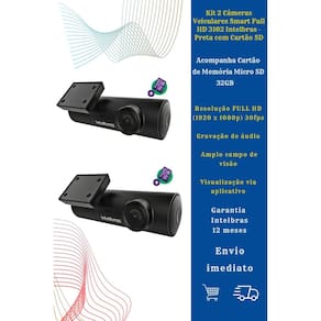 Kit 2 Câmeras Veiculares Smart Full HD com Cartão de Memória Micro SD 32GB DC3102 Intelbras - Preta