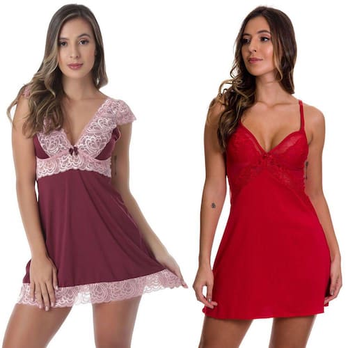Este kit com 2 camisolas é ideal para você que deseja arrasar com toda sensualidade e beleza em momentos mais especiais que irão se tornar inesquecíveis.