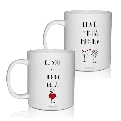 O kit 2 canecas personalizadas é o presente ideal para presentear quem a gente ama nesse dia dos namorados com personalização pensada especialmente para agradar aquele que está presente em nosso coração, é perfeita para tomar aquele café ou bebida preferida juntinho do nosso amor Aproveite o kit canecas personalizada da krystalon e surpreenda seu amor nesse dia tão especial