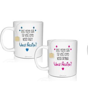 Kit 2 Canecas Lembrancinha Pajem E Daminha - Krystalon As canecas convite são uma forma linda e deliciosa de convidar ou agradecer os pequenos por participarem de uma data tão única. Com capacidade de 300ml, você tem a opção de encher as canecas com todo tipo de doce e assim encantar os futuros daminha e pajem. O sim deles será garantido Conteúdo: 1 caneca convite branca personalizado daminha e 1 caneca convite branca personalizado pajem Especificações: capacidade: 300 ml, cor: branco, material: policarbonato, não é porcelana, quantidade: 2 peças Ean: 7897581923612