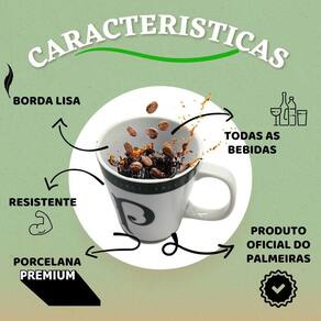Kit 2 canecas porcelana xícara branca verde premium 260ml café oficial selo Kit 2 unidades caneca porcelana premium 260ml café oficial com selo licenciado A caneca caneca porcelana premium do verdão é perfeita para os palmeirense mais apaixonados demonstrarem todo o carinho pelo seu time e ao mesmo tempo apreciar suas bebidas favoritas nos momentos mais aconchegantes da vida. Além disso você pode usá-la como porta treco, porta lápis ou presentear alguém especial. ela é fabricada em porcelana de alta qualidade que garante maior durabilidade durante seu uso e possui estampas únicas com cores vivas para deixar o ambiente ainda mais divertido e estiloso. Detalhes: Altura: 10 cm Diâmetro: 8 cm Capacidade: 260 ml Contém: 2 canecas Cuidados: Lavar com água e sabão neutro Não usar produtos químicos e abrasivos Impactos podem danificar o produto Ean: 7732647200880