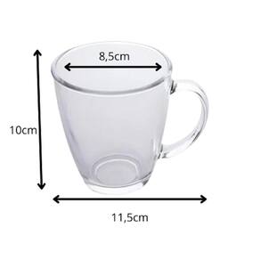 Características: - Composição: Vidro - Conteúdo da embalagem: 2 canecas - Capacidade de cada caneca: 350ml - Medidas: 10cm altura x 8,5cm diâmetro x 11,5cm largura com a alça