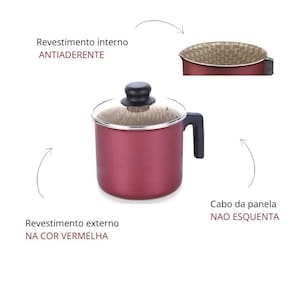Descrição: O Fervedor Tramontina Paris em Alumínio com Revestimento Antiaderente Starflon T1 Vermelho tem Cabo Baquelite 14 cm de diâmetro 1,9 litros é a escolha perfeita para sua cozinha Perfeito para ferver água, aquecer o leite ou preparar aquele chocolate quente especial, ele é produzido em alumínio e conta com revestimento antiaderente interno e externo Starflon T1, característica que garante que os alimentos não grudem em sua superfície e faz com que a limpeza seja feita facilmente. Para levar ainda mais qualidade, Seu cabo é em baquelite antitérmico e vai lhe proporcionar um manuseio muito mais seguro e confortável Caracteristicas: Corpo de alumínio com espessura de 1,6 mm que proporciona cozimento rápido e uniforme. Revestimento interno e externo de antiaderente Starflon T1. O único com a tecnologia T: maior poder de antiaderência; maior resistência à abrasão; maior durabilidade; mais fácil para limpar e livre de PFOA, garantindo uma resistência à abrasão acima de 5.000 ciclos segundo a Norma ABNT NBR 15321:2013. Cabo de baquelite antitérmico e pegador de nylon que oferecem segurança durante o manuseio. Pode ir à máquina de lavar louças facilitando seu dia a dia.