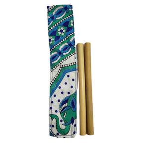 Kit com 2 canudos de bambu que acompanham capa artesanal 100% algodão. Canudos sustentáveis e retornáveis para levar na bolsa e ajudar na redução de plástico no meio ambiente e contruibuir para um planeta mais limpo e sustentável. Tamanho perfeito para tomar aquele milkshake bem geladinho.