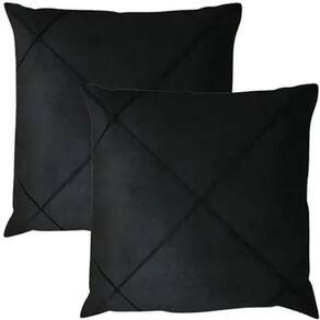 Kit 2 Capa De Almofada Suede Aveludada Drapeada 45x45cm Preto