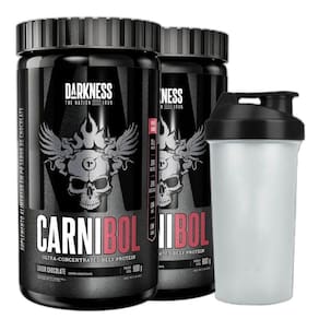 Carnibol Darkness Carnibol Darkness é um suplemento à base de proteína de origem bovina, categorizado como um blend com sua fórmula exclusiva de proteína isolada e hidrolisada. É um excelente suplemento para quem procura ganho de massa, sendo um ótimo suporte nutricional para atletas que realizam treinamentos intensos. Ao Suplementar Carnibol: Apresenta um benefício ao processo pós-treino; Consiste em proteína bovina que concentra naturalmente elevados índices de creatina; Uma alta velocidade de absorção; Pode auxiliar no aumento da força; Vantagens: Um dos suplementos com maior dosagem de proteína por dose; Não contém açúcares; Livre de lactose e glúten; Low Carb; Suplemento ideal para reposição e complementação proteica para dietas; Sugestão: Diluir 35g 2 dosadores em 250ml de água. Consumir uma vez ao dia ou conforme orientação profissional. Exclusiva Coqueteleira Taurene - Resistente, Estilosa e Prática A Coqueteleira Taurene foi desenvolvida para facilitar o preparo das suas proteínas, suplementos e shakes preferidos, permitindo que você os leve facilmente para onde quiser: academia, viagens, escritório, passeios, na bolsa ou no carro. Ela é feita com materiais de alta qualidade, garantindo segurança no armazenamento e no transporte. Um acessório essencial para seus treinos e para a rotina diária, a coqueteleira vem em várias opções de cores, permitindo que você escolha a que melhor combina com seu estilo. Sugestão de Uso: Para preparar seu shake, adicione leite ou água, coloque a quantidade recomendada de suplemento, tampe bem e chacoalhe por 10 a 15 segundos para misturar os ingredientes. Após o uso, lave a coqueteleira com água e sabão para mantê-la em ótimo estado.